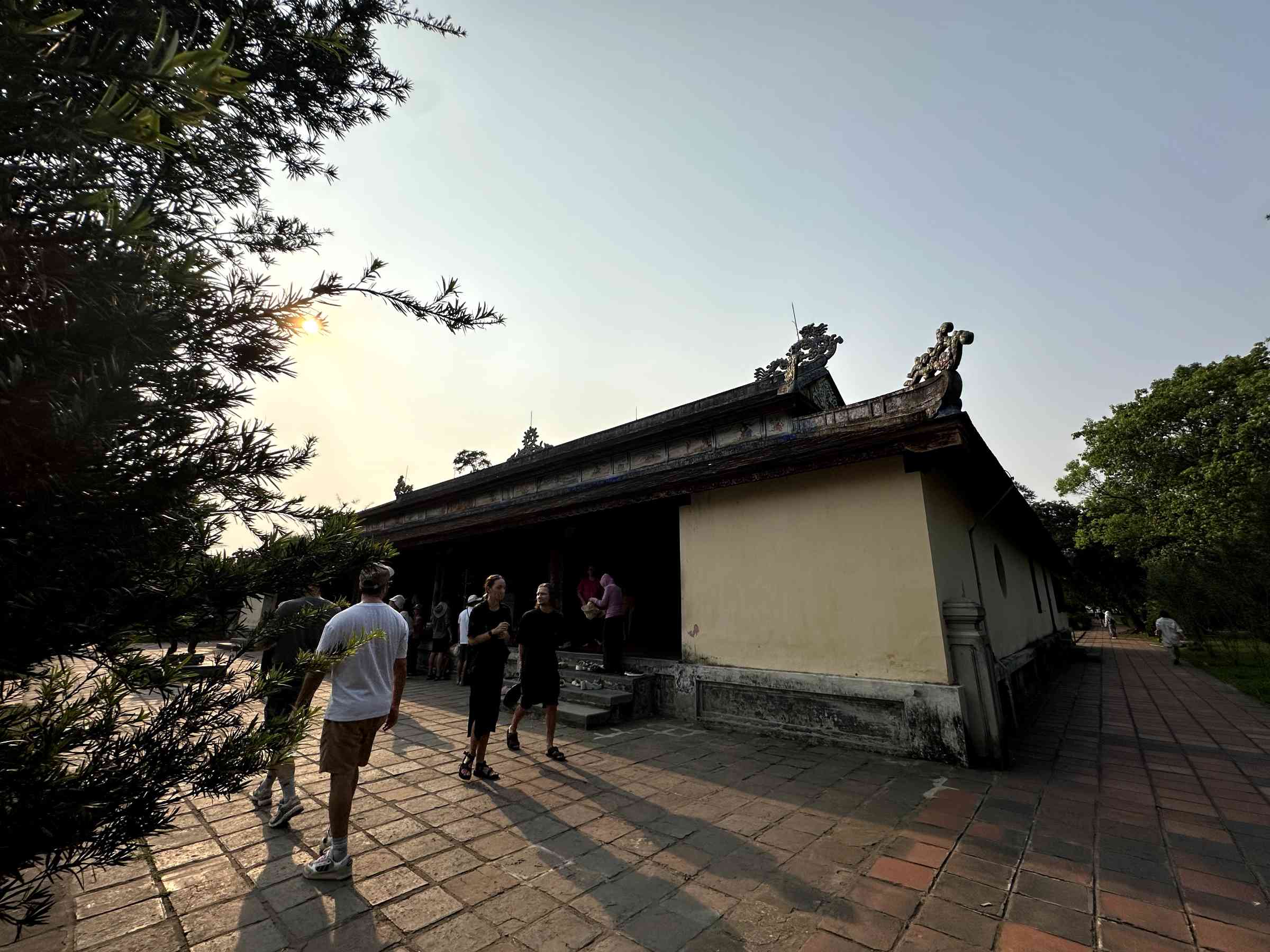 Caption: Khoảnh khắc giao thoa giữa thiên nhiên và kiến trúc cổ kính. Đây chính là lúc "Huế nhất".